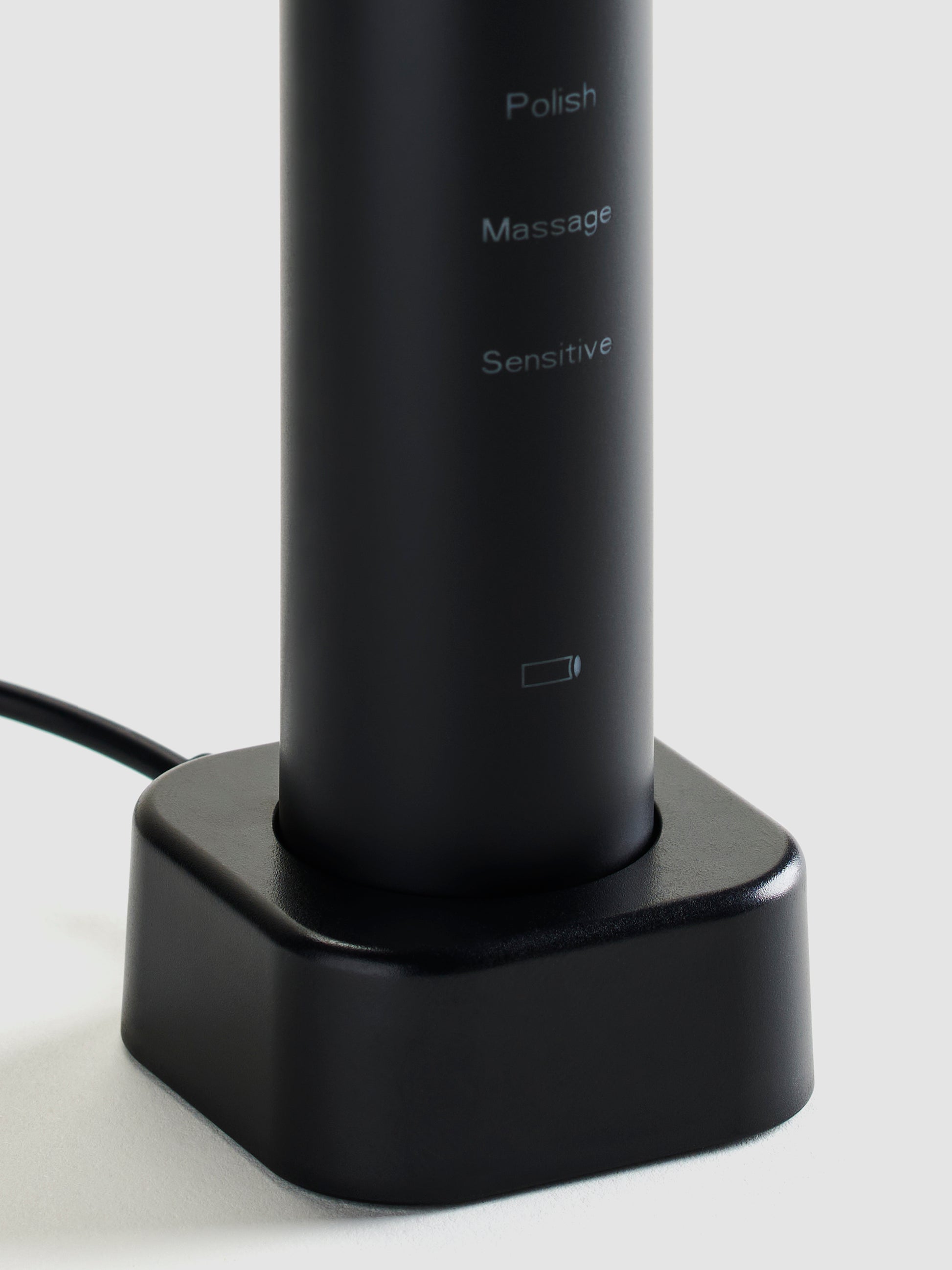 Lost your charger? We got you. This sleek, easy to use black charger base is USB powered to charge your Electric Toothbrush for up to 6 weeks. Plus, it looks great on your counter while doing it.