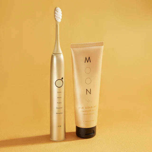 The gold standard of oral care: the limited-edition Gold Electric Toothbrush and sparkle-packed 24K Gold Gel Toothpaste for a luxurious brushing routine that will leave your smile glowing.