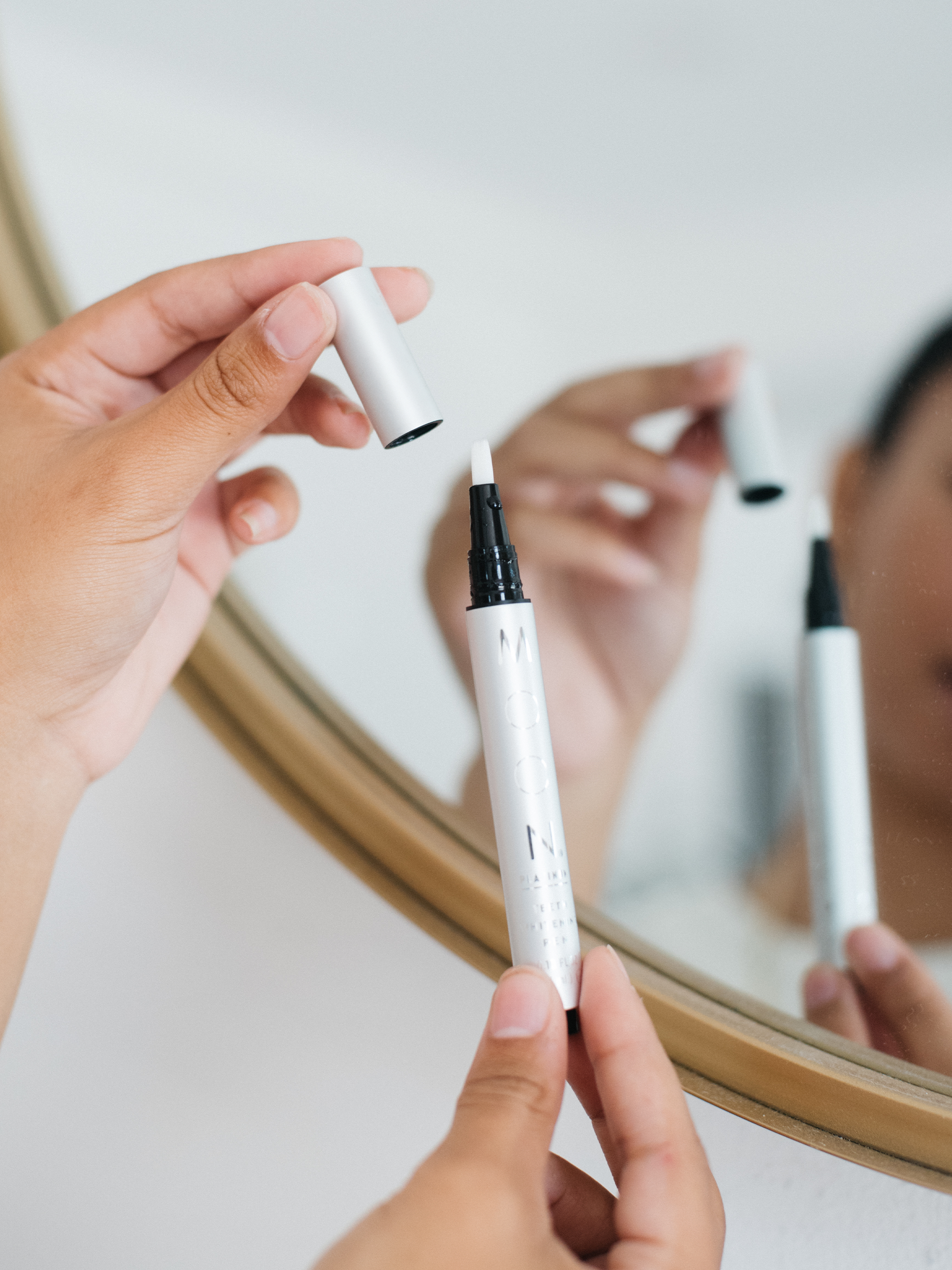 - Remove cap and click the button at the end of the pen until whitening gel dispenses (it may take several clicks with the first use)