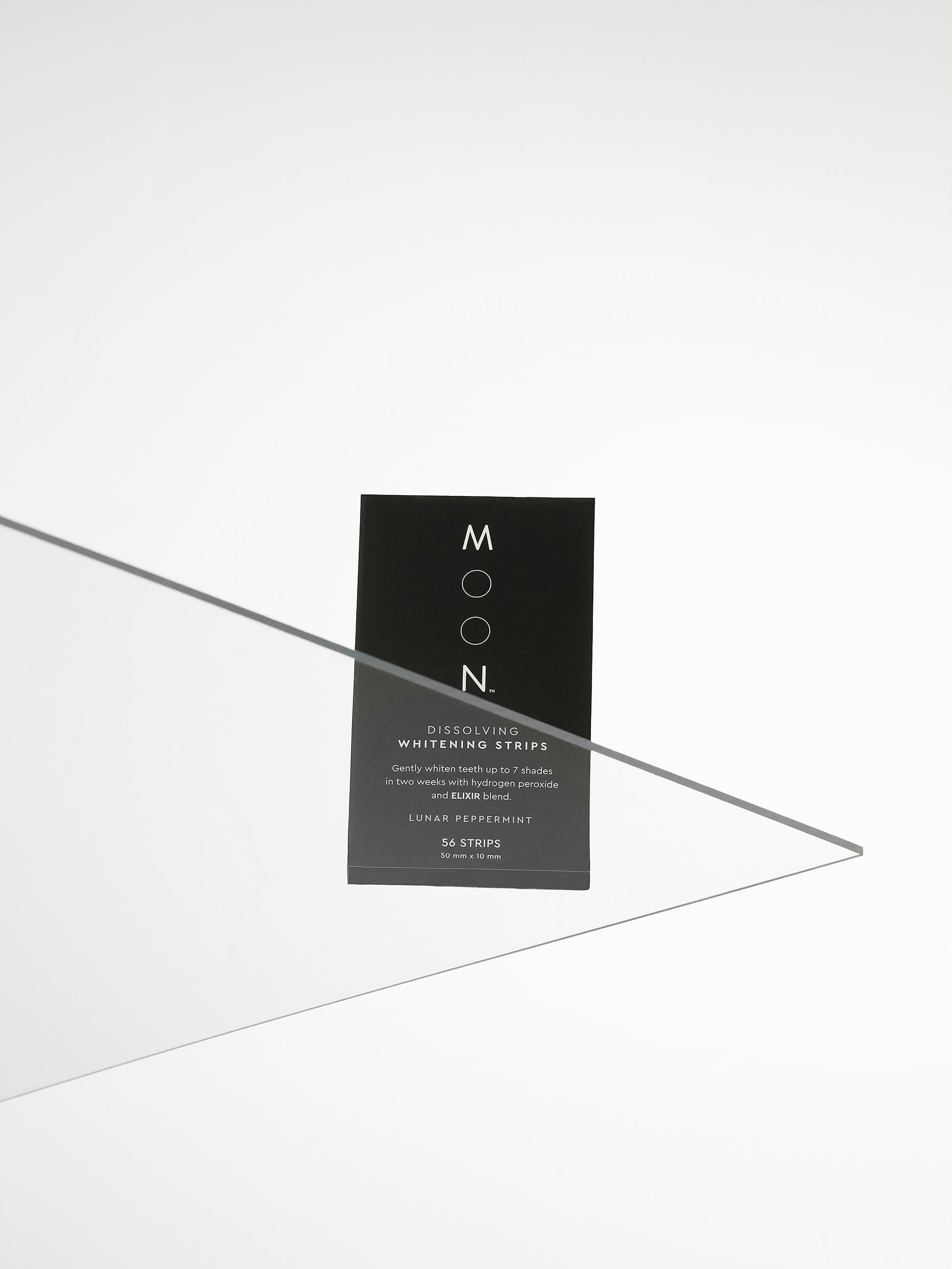 Moon’s dissolving whitening strips are formulated with gentle whitening ingredients. However, if the strips come into contact with your gums and lips, you may experience mild, temporary sensitivity or irritation, such as tingling, blisters, or the appearance of white spots. To help prevent this, moisten upper teeth with your tongue, firmly apply the strip to teeth lining up to your gums just below the gumline, and glide your tongue over lick the strip so it doesn’t stick to your lip. If you experience discomfort, rinse your mouth with water and allow 1-2 days before using another strip. If further irritation occurs, stop use and consult with your dentist on whether this product is right for you.