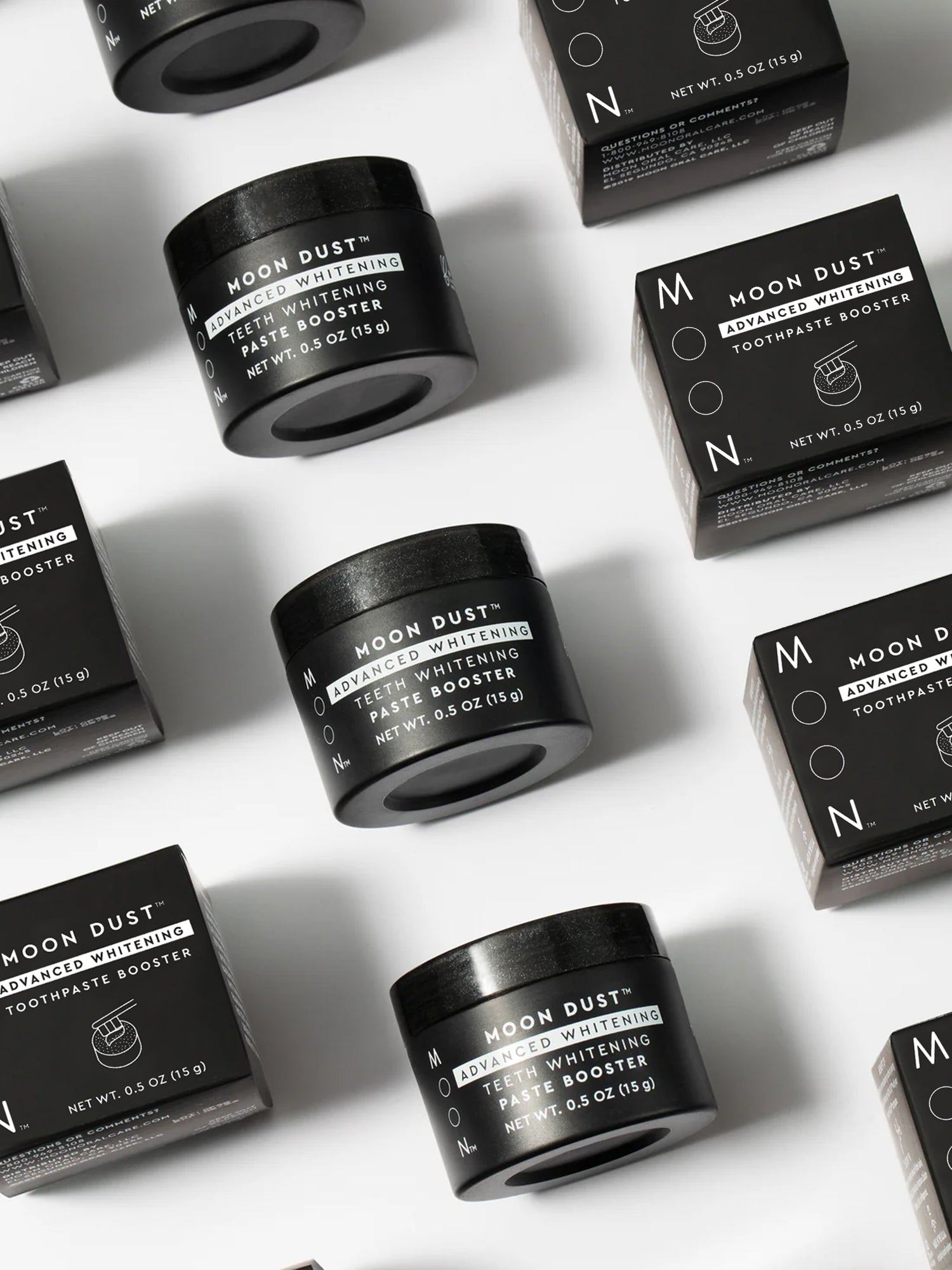 - Use with your favorite MOON™ toothpaste. Place usual amount of toothpaste on toothbrush bristles. Lightly dip pasted bristles into jar, evenly coating with MOON DUST™ powder. Tap to remove excess. Brush teeth as usual. Use only 1-2 times per week as an enhancement to your normal brushing routine.