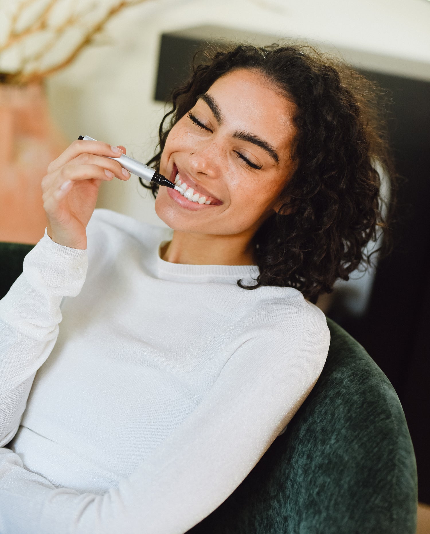 Safe for sensitive teeth, our urea peroxide and antioxidant blend of Lavender Oil, Strawberry Fruit Extract and Honeysuckle Flower Extract gently whitens teeth.